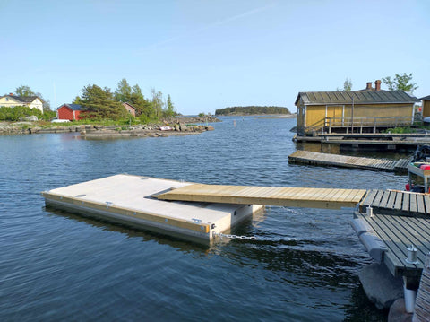 Betongpontoner är stabila och har hög bärkraft, vilket innebär att de också kan användas som vågbrytare eller som flytande plattformar för t.ex. förrådshus, flytande hus eller bastur. Våra betongbryggor håller högsta standard och är tillverkade i enlighet med ISO 9001 -14001.